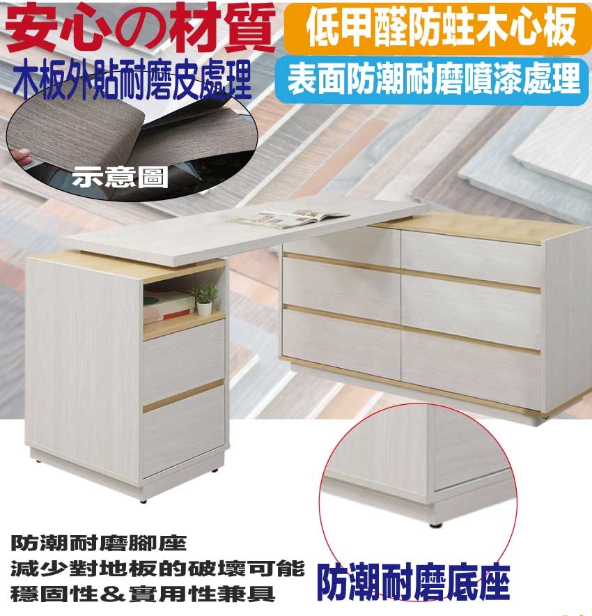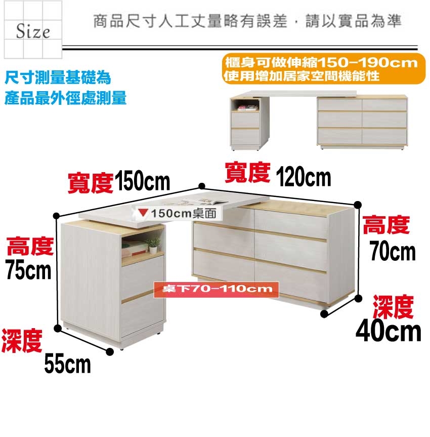 - ◆產品名稱:【綠家居】安卡5尺可伸縮變化八抽書桌組合