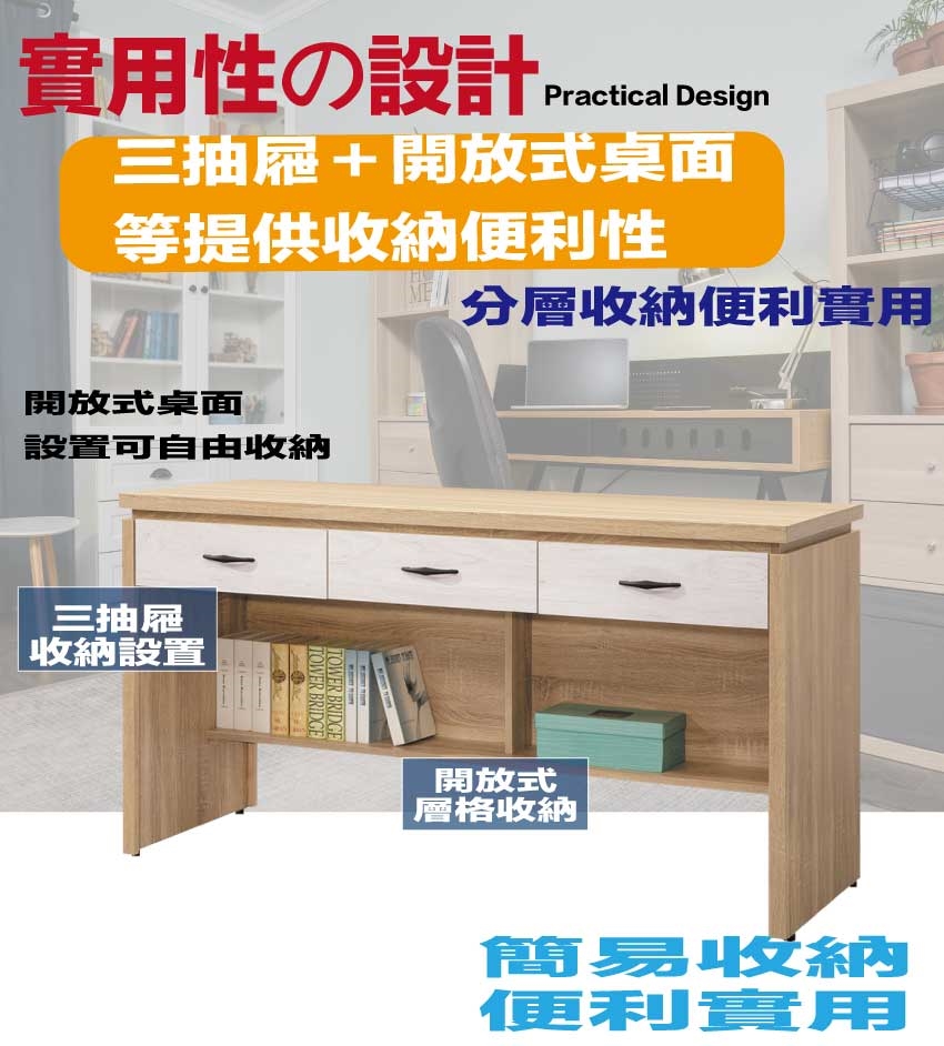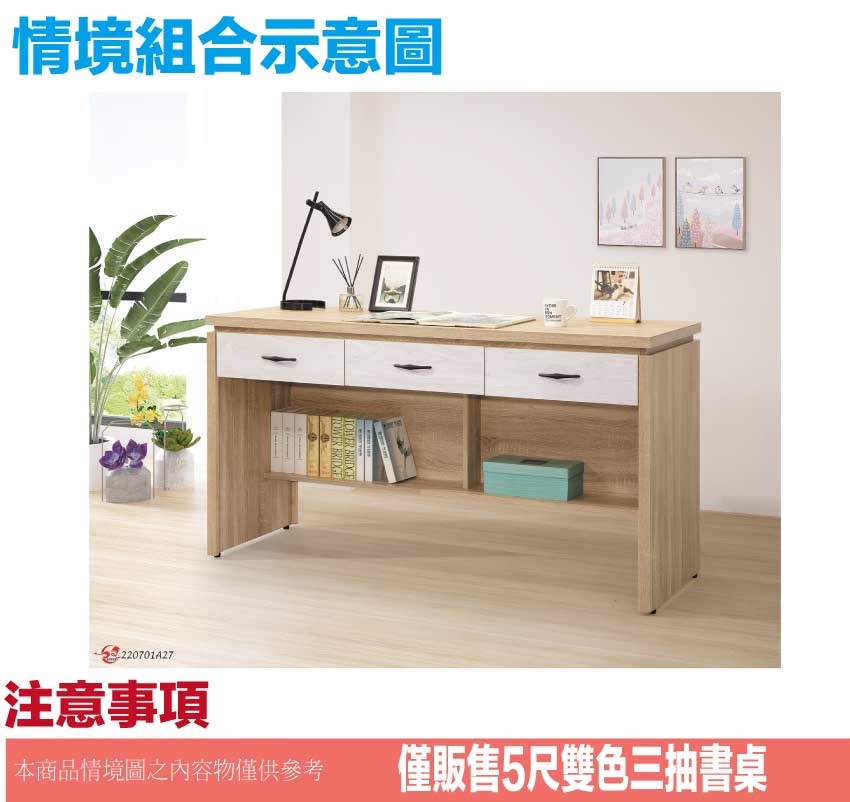 - ◆產品名稱:【綠家居】美尼利雙色5尺三抽書桌