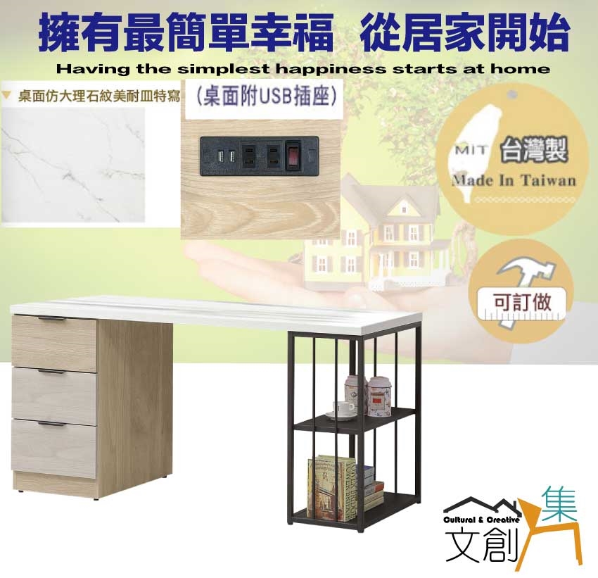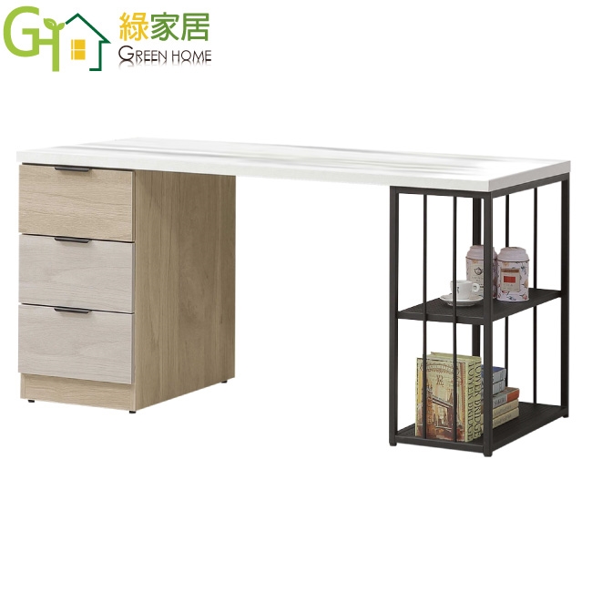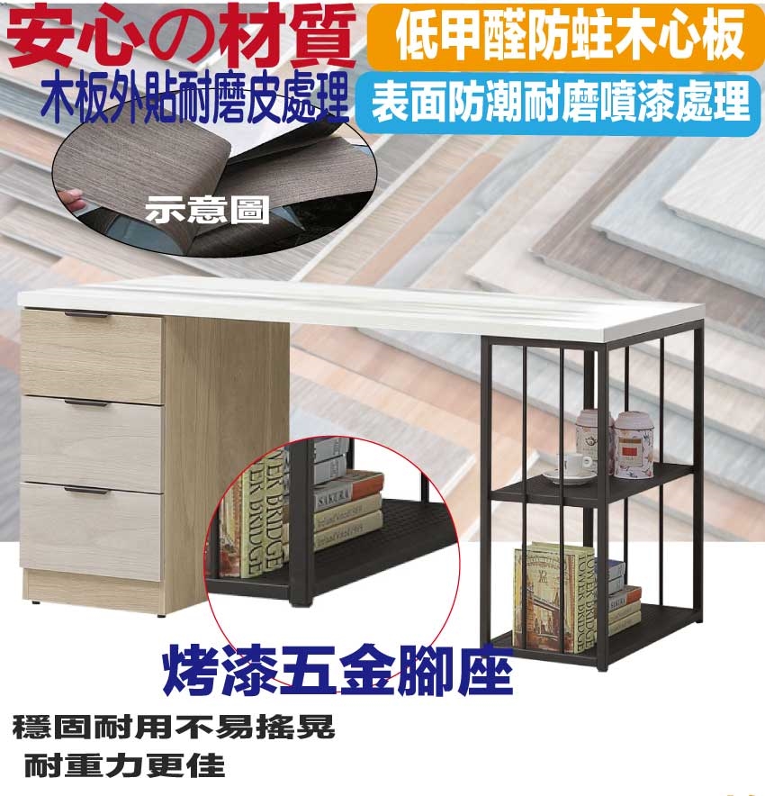 ★偏遠地區需額外加收運費,下標請先問與答詢問★ ★下訂前注意 由於商品流動較快,下訂前請先詢問是否有貨在下訂喔~★ 【綠家居】蘿克5尺三抽邊框鐵腳書桌(附插座單個) 現代雙色系+安心材質製造,使用放心+搭配居家更便利,採用防蛀木心板+防潮耐磨底座+烤漆五金腳座+五金滑軌結構+仿大理石紋耐磨美耐皿材質桌面板等安心材質製造 ,外層採用防潮耐磨噴漆處理搭配採用三抽屜+開放層格+附插座單個等收納空間設計,全由專人配送到家,專業安心服務,替你省下更多時間!