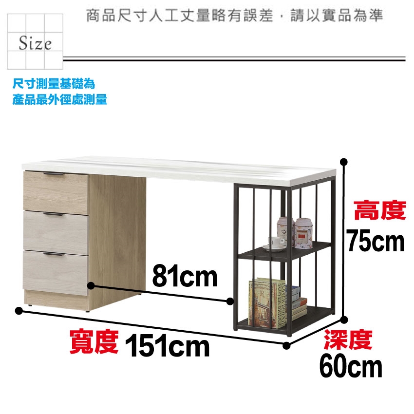 - ◆產品名稱:【綠家居】蘿克5尺三抽邊框鐵腳書桌(附插座單個)