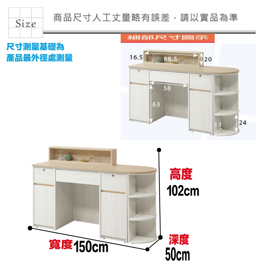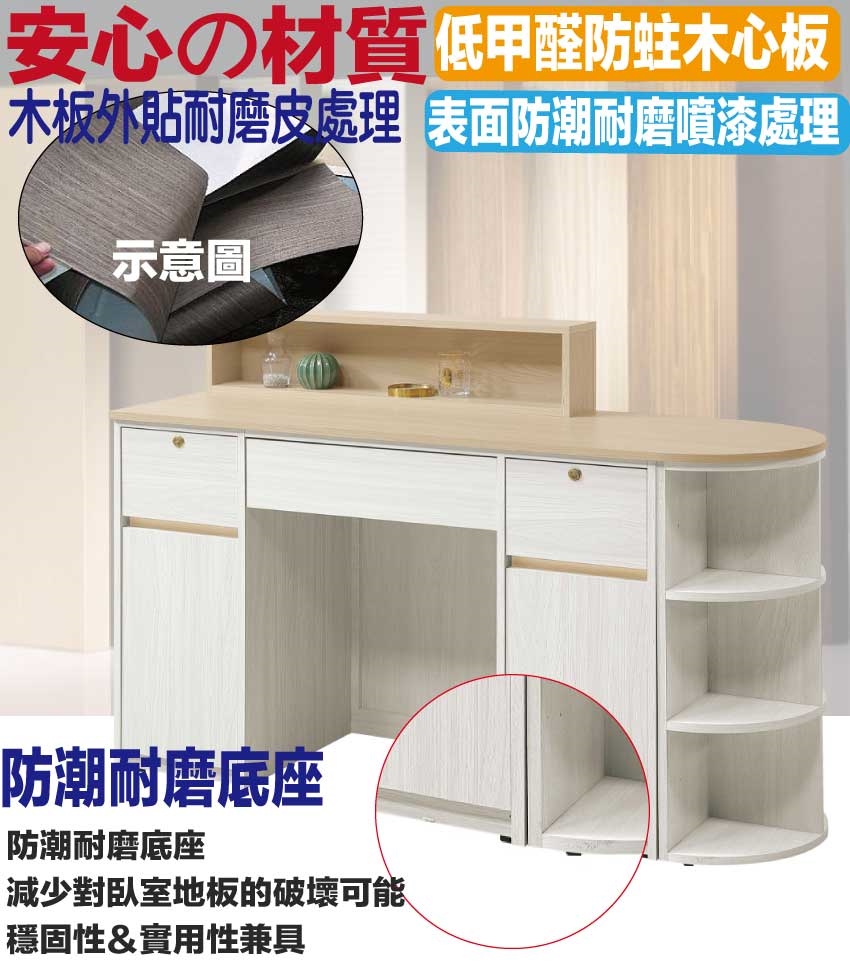 ★偏遠地區需額外加收運費,下標請先問與答詢問★ ★下訂前注意 由於商品流動較快,下訂前請先詢問是否有貨在下訂喔~★ 【綠家居】亞畢克5尺多功能書桌櫃組合 現代雙色系+安心材質製造,使用放心+搭配居家更便利,採用防蛀木心板+防潮耐磨底座+五金滑軌結構+防夾手緩衝門片五金等安心材質製造 ,外層採用防潮耐磨噴漆處理搭配採用開門櫃+三抽屜+內&外開放層格等收納空間設計,全由專人配送到家,專業安心服務,替你省下更多時間!