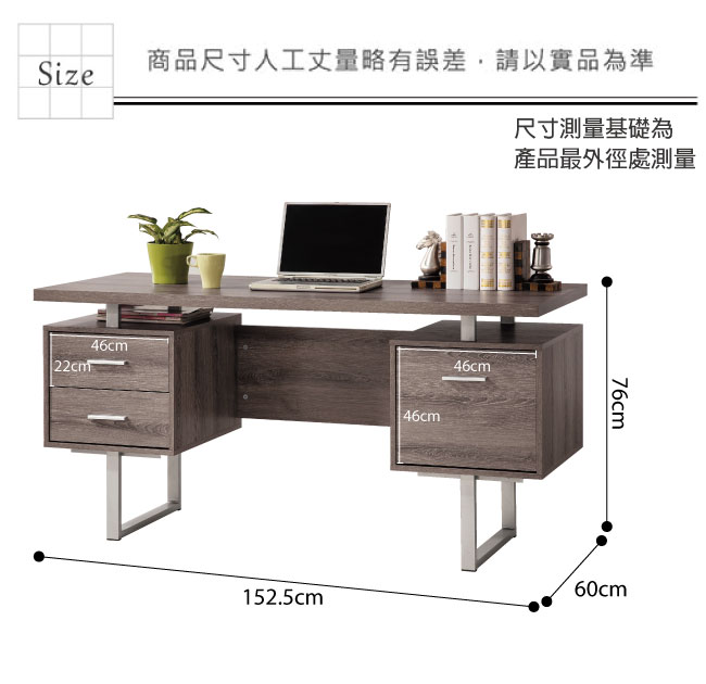書桌:(寬)152.5 x(深)60 x(高)76/公分