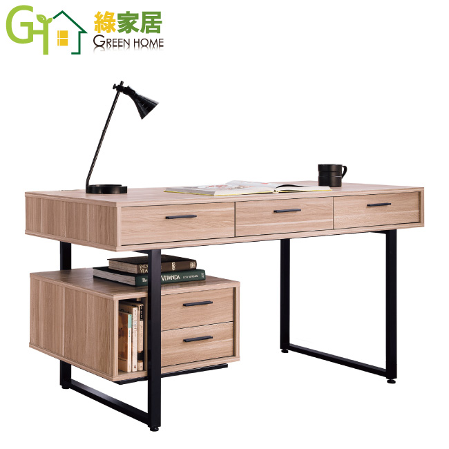 【綠家居】羅可 時尚5尺工業風造型書桌/電腦桌(二色可選) 優雅外觀造型設計,整體材質採用防蛀木心板+黑鐵砂金屬腳座+時尚造型把手+鋼珠滑軌結構+優利坦抗磨三層全包式塗裝處理等設計 ,防止受潮,增加支撐力,堅固不會塌陷,採用五抽屜+開放式桌面等收納空間設計,高雅的紋路,營造隨性時尚感,清潔容易不麻煩。全由專人配送到家,專業安心服務,替你省下更多時間!