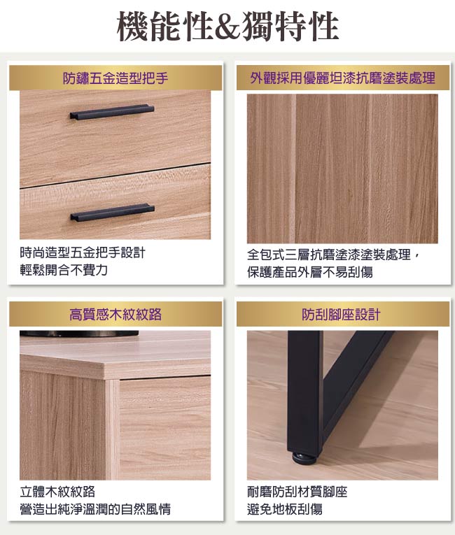 防蛀木心板+黑鐵砂金屬腳座等材質,結構牢固耐用,也不用擔心蟲蛀的煩惱,使用放心