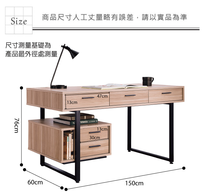 書桌尺寸:(寬)150x(深)60 x(高)76 /公分
