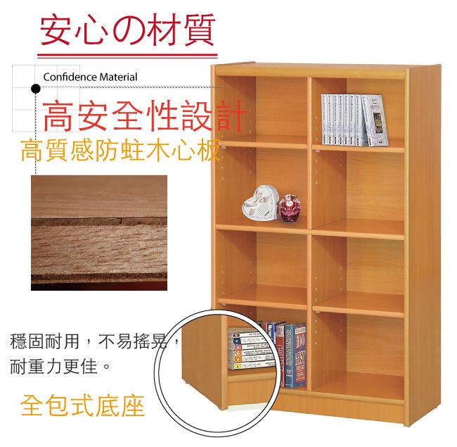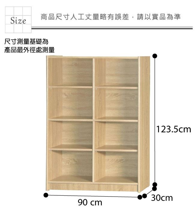 材質 | ◆產品名稱:【綠家居】基斯坦 現代3尺八格書櫃/收納櫃(三色可選) 收納櫃尺寸:(寬)90.5x(深)30x(高)123.5/公分 ◆材質: 材質:防蛀木心板 塗漆:優利坦全包式耐磨噴漆處理 |