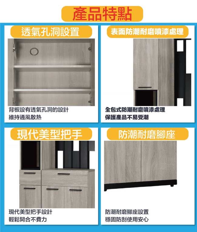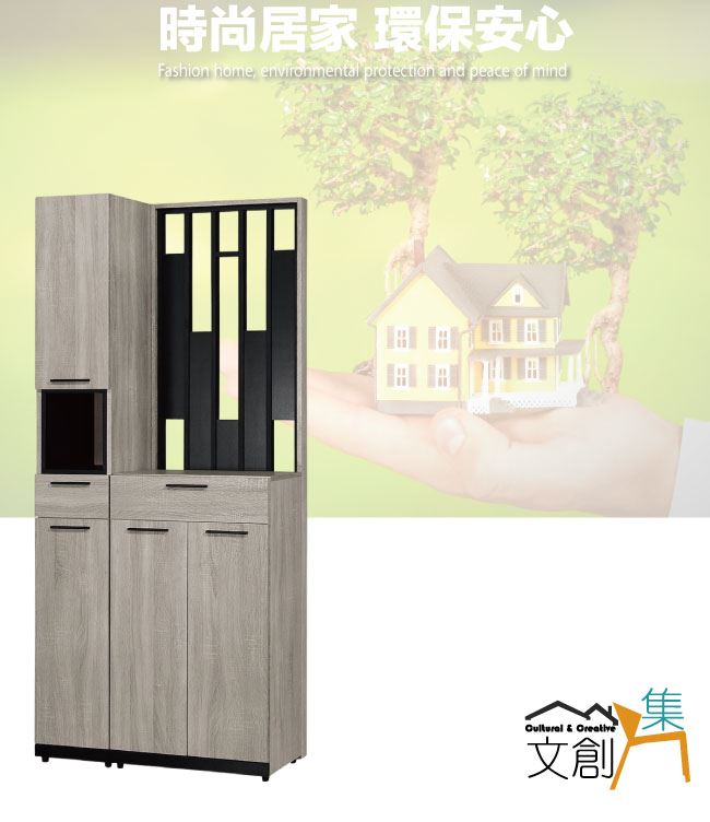 商品 介紹 | 【綠家居】卡瑞3尺四門二抽高玄關屏風鞋櫃組合 木紋雙色系+現代簡約風格+安心材質製造,整體採用防蛀木心板+防潮耐磨腳座+五金滑軌結構+防夾手緩衝門片五金等安心材質製造,產品外層採用防潮耐磨噴漆處理搭配採用開門櫃+二抽屜+內&外開放式層格等收納空間設計,全由專人配送到家,專業安心服務,替你省下更多時間! 【商品特色】 木紋雙色系+現代簡約風格+安心材質製造,使用放心+搭配居家更便利 採用防蛀木心板+防潮耐磨腳座+五金滑軌結構+防夾手緩衝門片五金等安心材質製造 產品外層採用防潮耐磨噴漆處理 採用開門櫃+二抽屜+內&外開放式層格等收納空間設計 此商品不需要DIY組立,此商品為組立後之成品 品質保證、專業設計、貼心服務 全由專人配送到家,專業安心服務,替您省下更多時間 |
