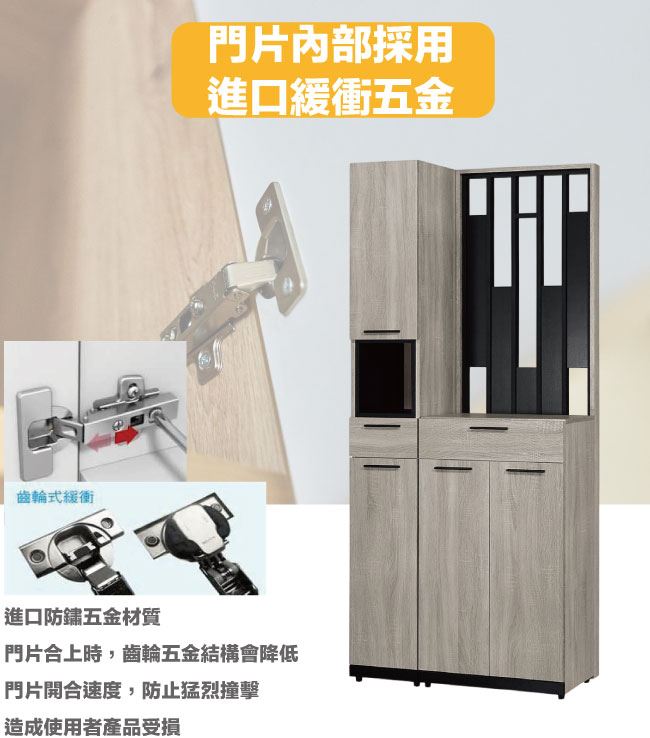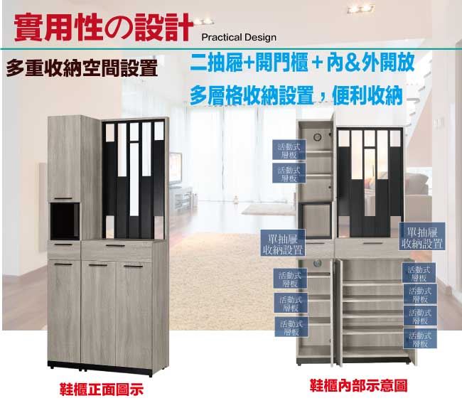 【綠家居】卡瑞3尺四門二抽高玄關屏風鞋櫃組合