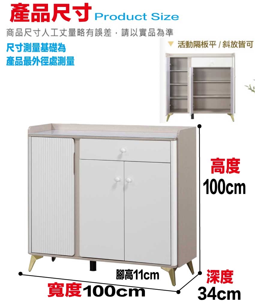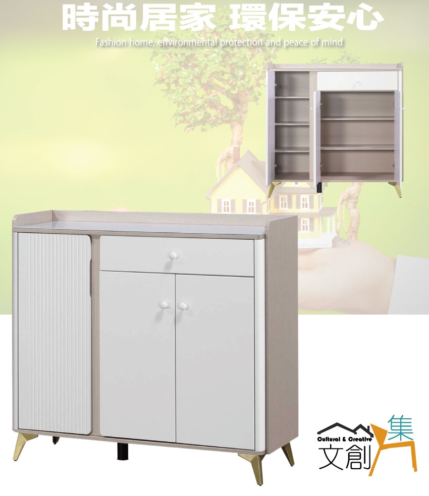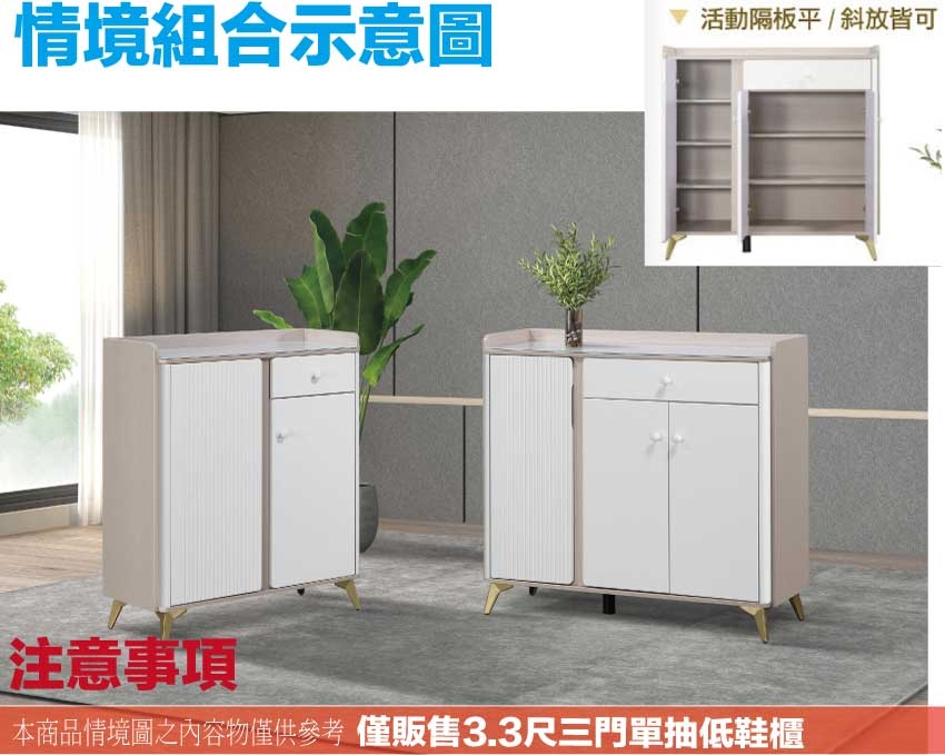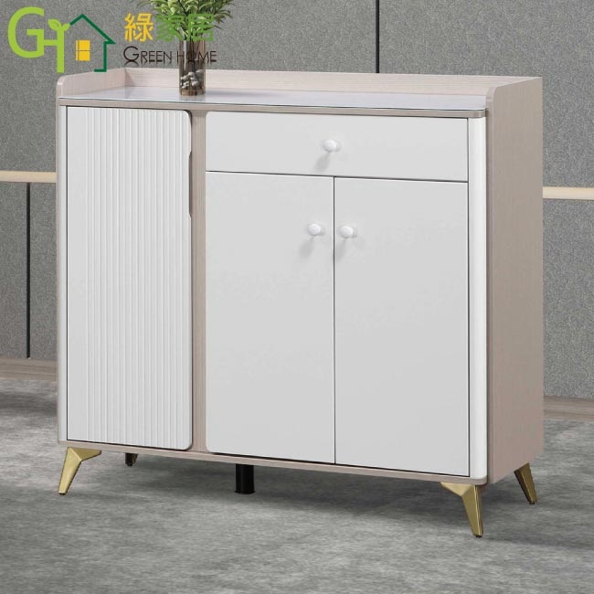 - ◆產品名稱:【綠家居】喬利雙色3.3尺玻璃三門單抽鞋櫃