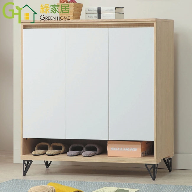 【綠家居】提斯3.9尺三門鐵腳鞋櫃(二色可選)