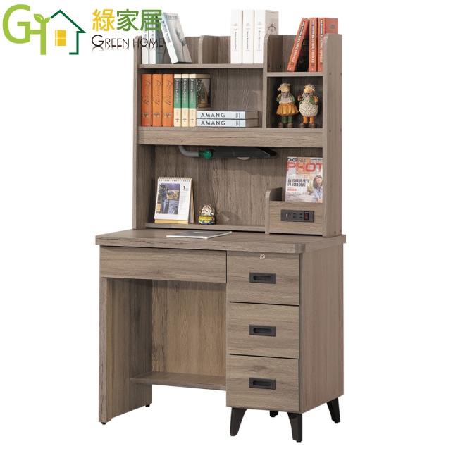 【綠家居】伊達2.9尺四抽插座高書桌組合(三色可選+附LED可調書桌燈)