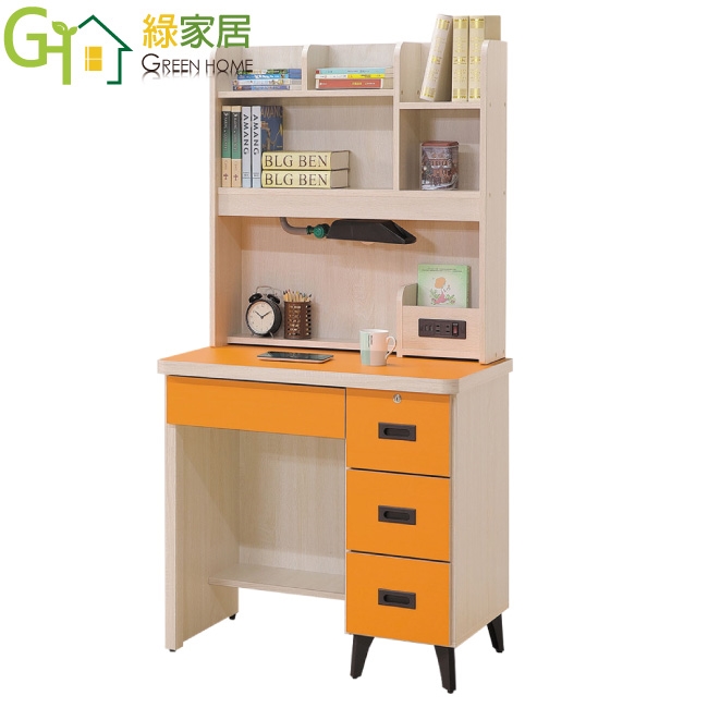 【綠家居】 馬達2.9尺四抽插座高書桌組合(六色可選+附LED可調書桌燈)