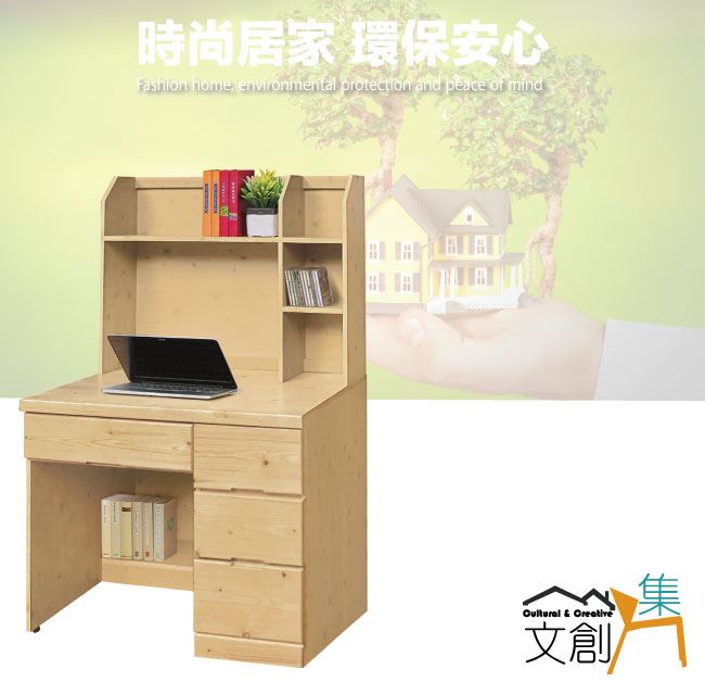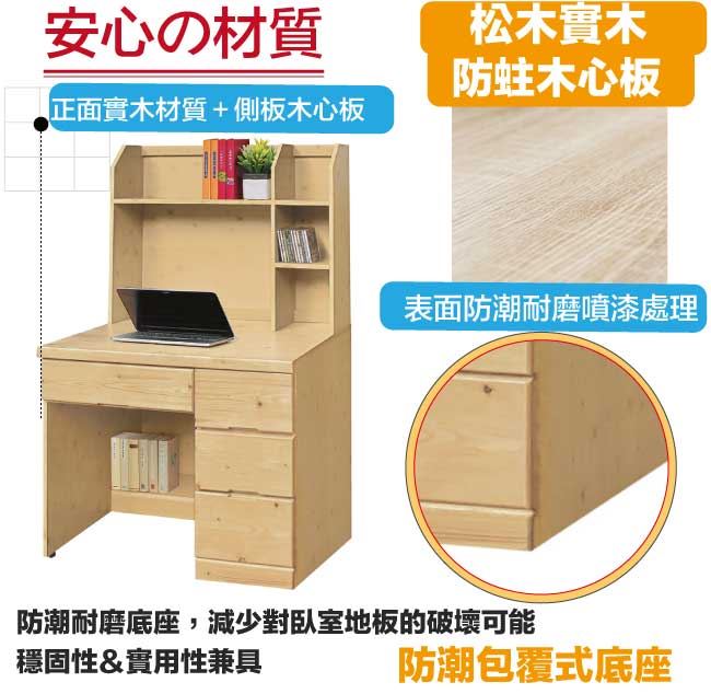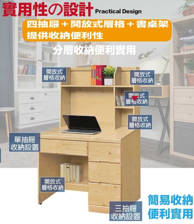 【綠家居】沛可3.3尺實木四抽高書桌組合