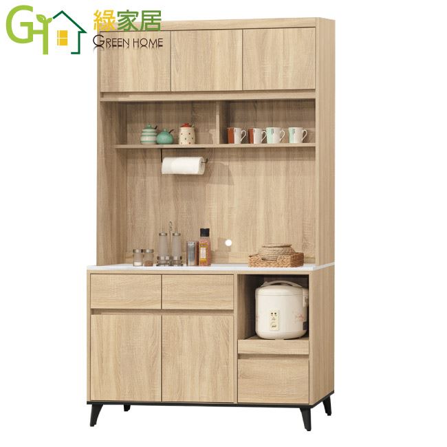 【綠家居】白布加岩板4尺五門拉盤三抽高餐櫃組合(六色可選)