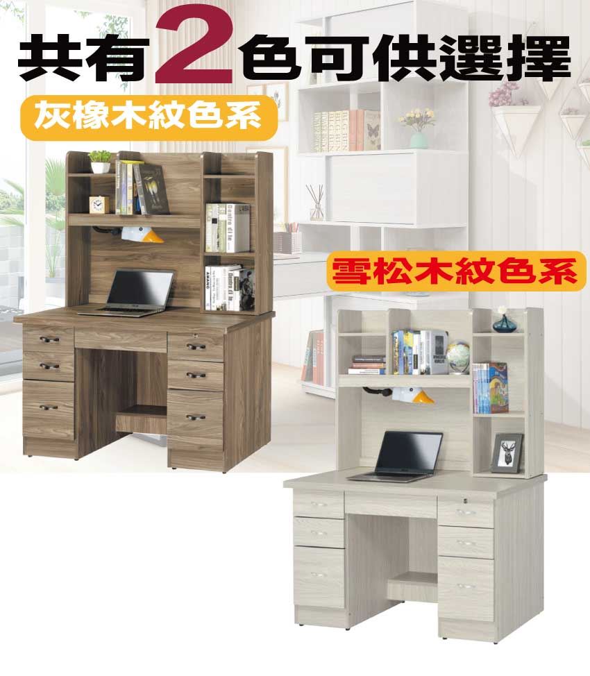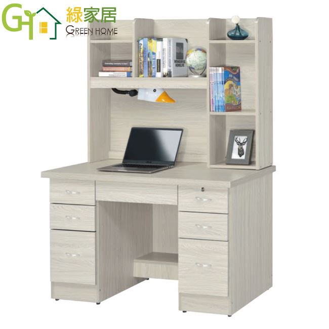 【綠家居】拓也4尺七抽書桌組合(二色可選+附可調護眼燈)