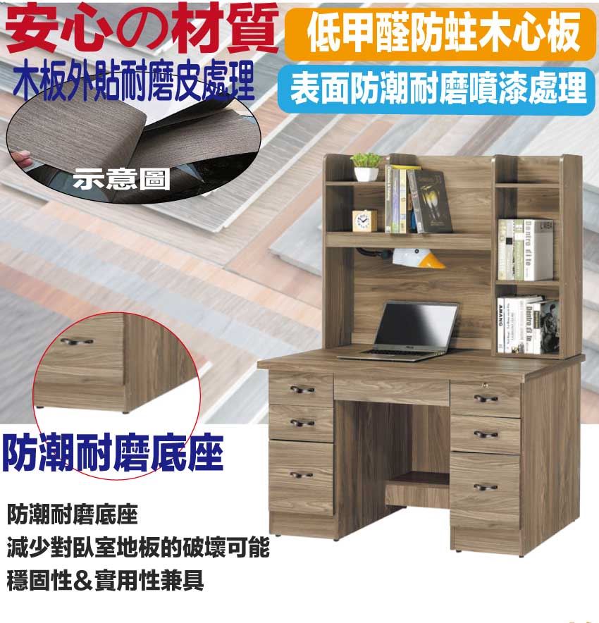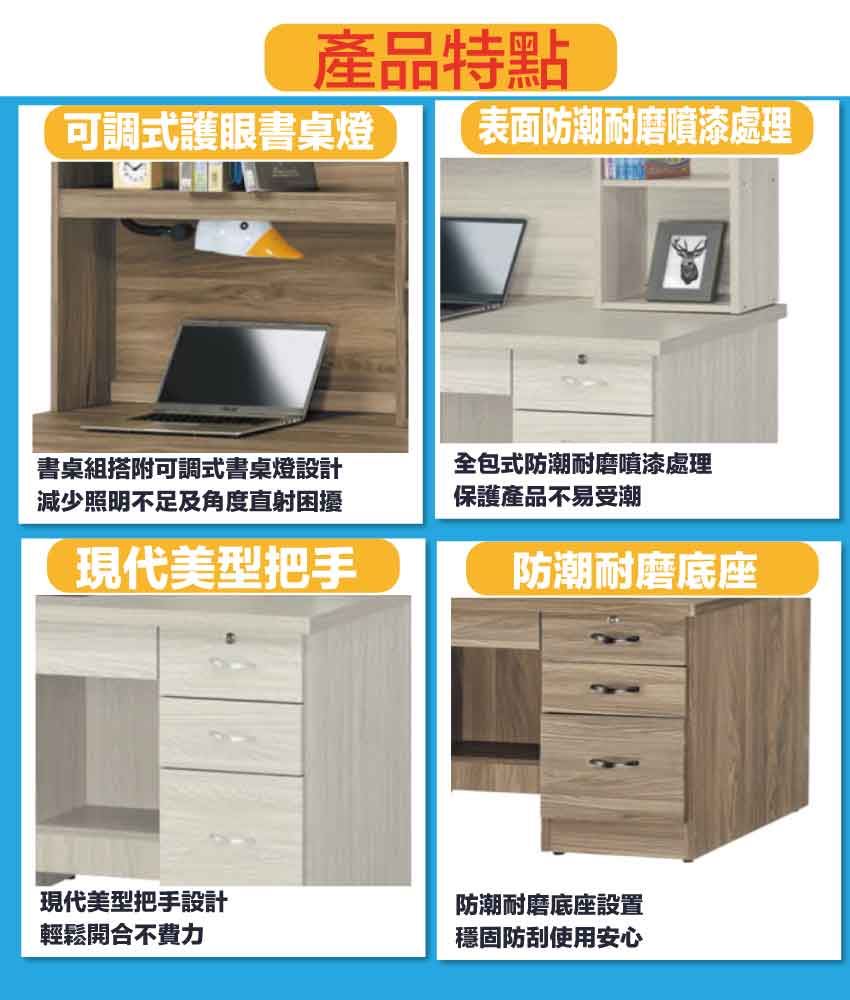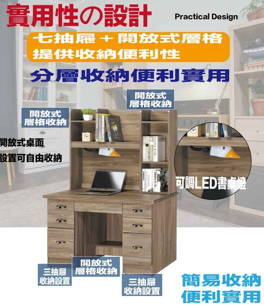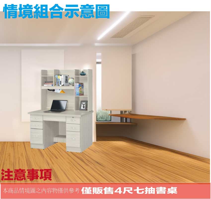 ◆產品名稱:【綠家居】拓也4尺七抽書桌組合(二色可選+附可調護眼燈)