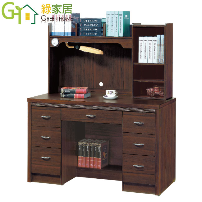 【綠家居】吉賽拉 時尚4.2尺胡桃木紋書桌/電腦桌組合(上+下座)