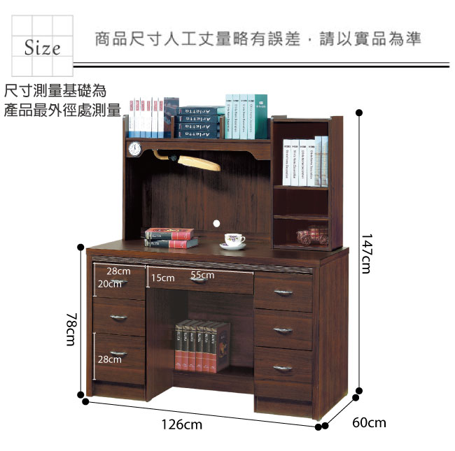 書桌:(寬)126 x(深)60 x(高)147/公分