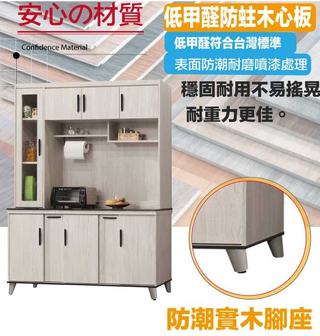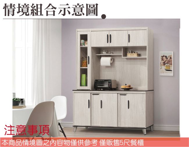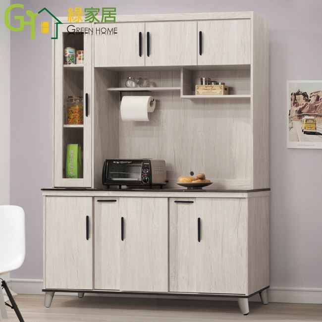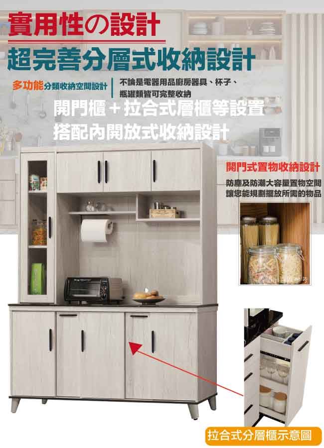 【綠家居】艾布淺橡5尺黑雲石面高餐櫃組合