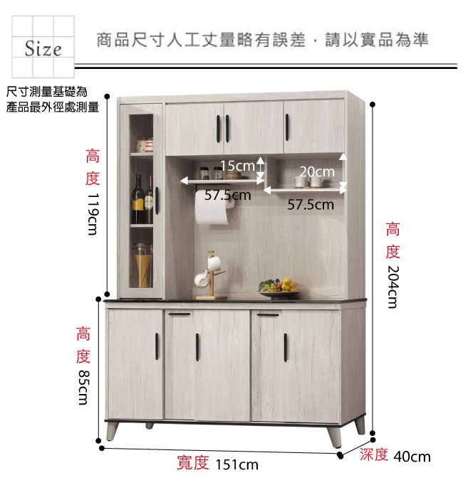 材質 | ◆產品名稱:【綠家居】艾布淺橡5尺黑雲石面高餐櫃組合 尺寸:(寬)151x(深)40(高)204/公分 ◆材質: 材質:防蛀木心板+防潮實木腳座+五金滑軌結構+防夾手緩衝門片五金+12mm黑雲紋石面桌面板 噴漆:防潮耐磨噴漆處理