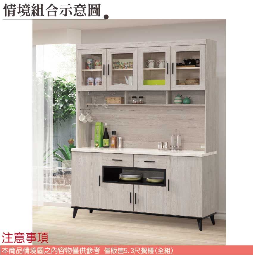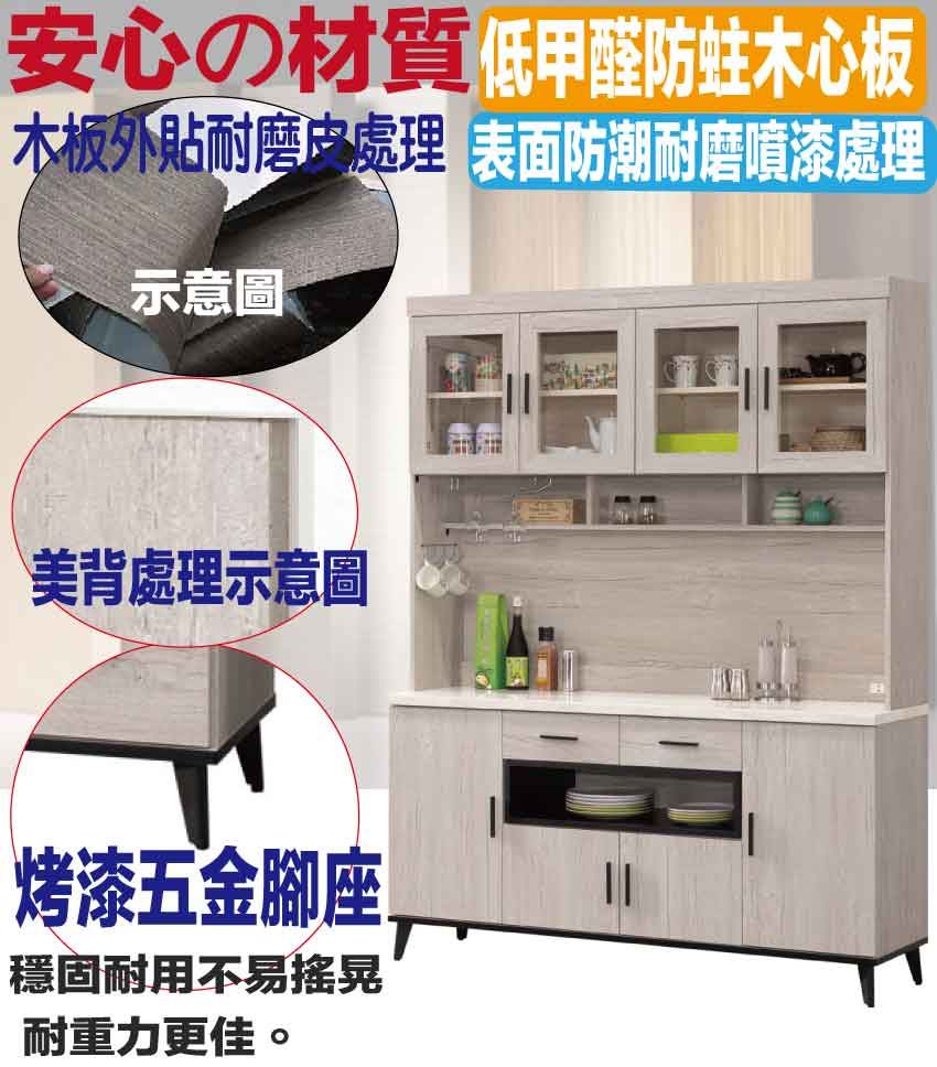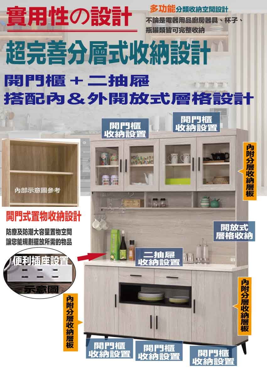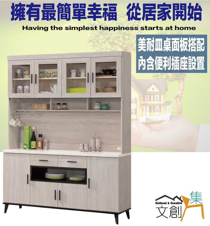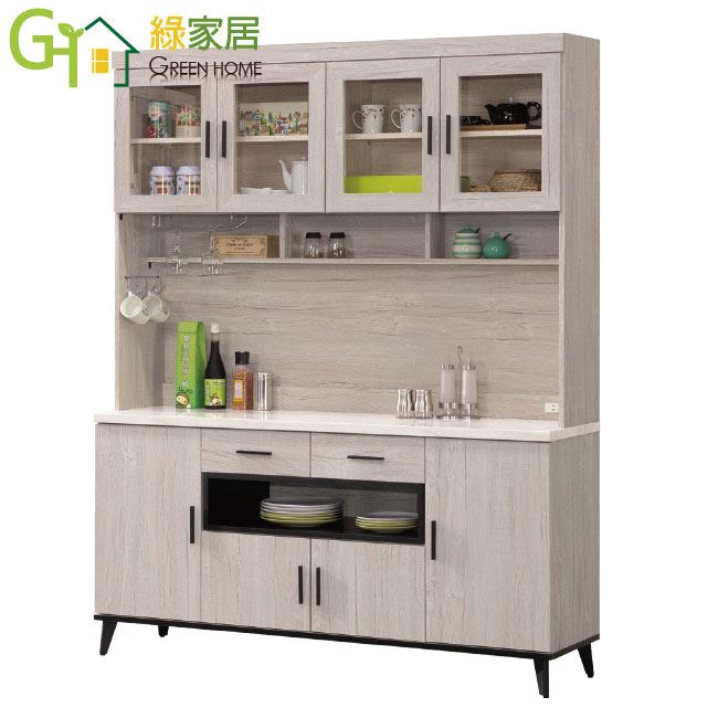 - 產品名稱:【綠家居】凱曼雙色5.3尺八門二抽高餐櫃組合(內含插座+仿石紋耐磨美耐皿桌面板)