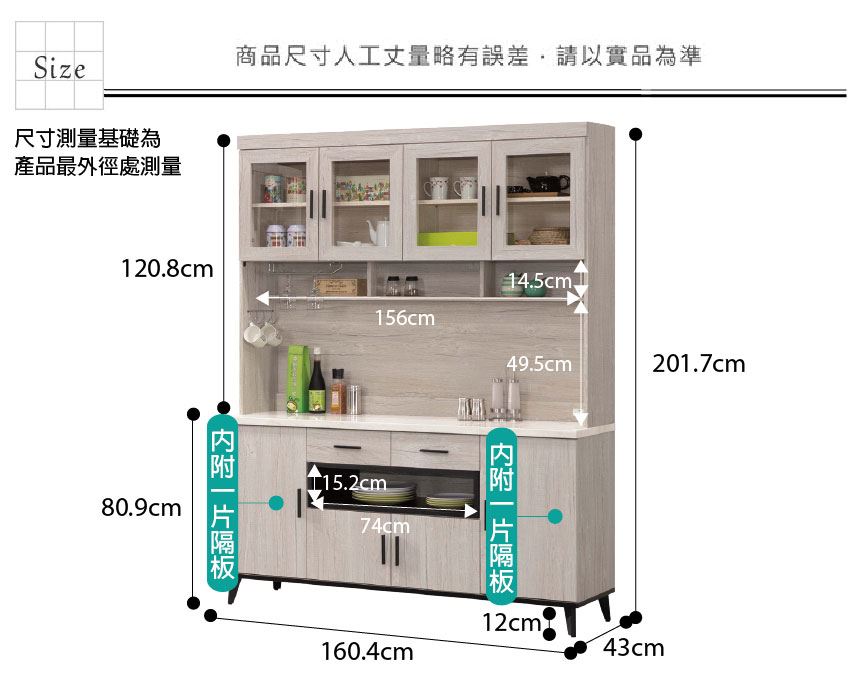 - 尺寸:(寬)160.4x(深)43x(高)201.7/公分