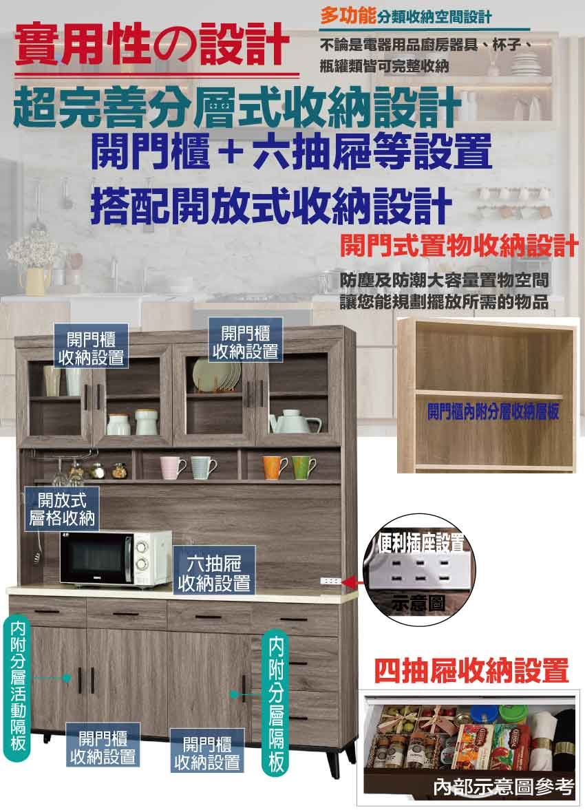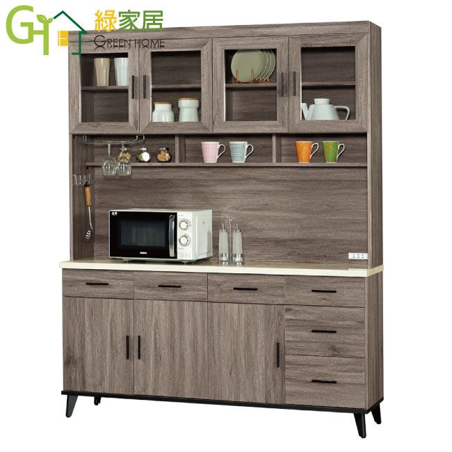 - 產品名稱:【綠家居】莉曼5.3尺七門六抽高餐櫃組合(內含插座+仿石紋耐磨美耐皿桌面板)