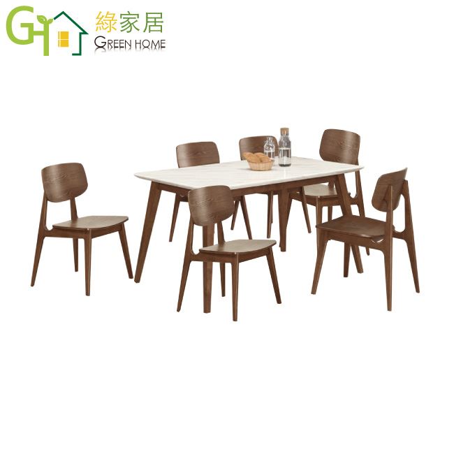 【綠家居】哈利5尺雲紋石面實木餐桌餐椅組合(一桌六椅組合)