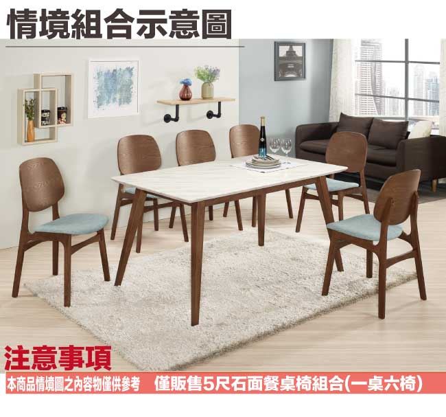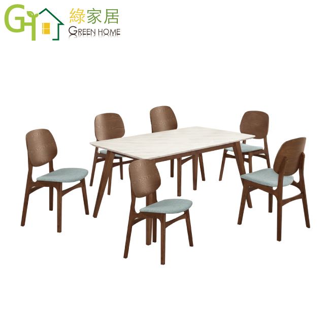 【綠家居】艾琳5尺雲紋石面實木餐桌布餐椅組合(一桌六椅組合)