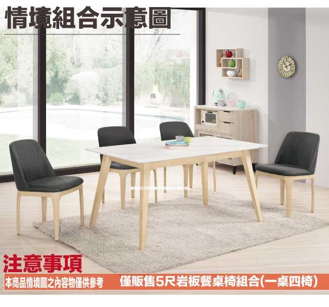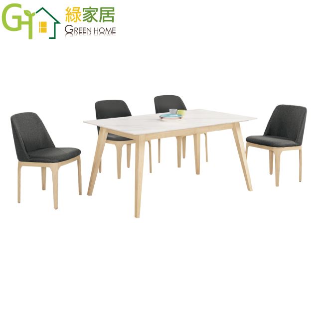 【綠家居】達里卡5尺岩板實木餐桌布餐椅組合(一桌四椅組合)