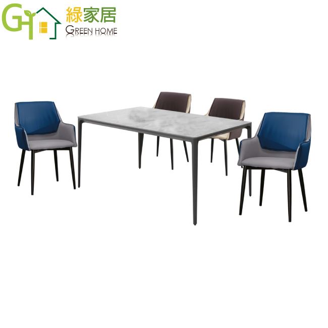 【綠家居】沃克5.3尺高硬度岩板餐桌椅組合(一桌四椅組合+餐椅二色可選)