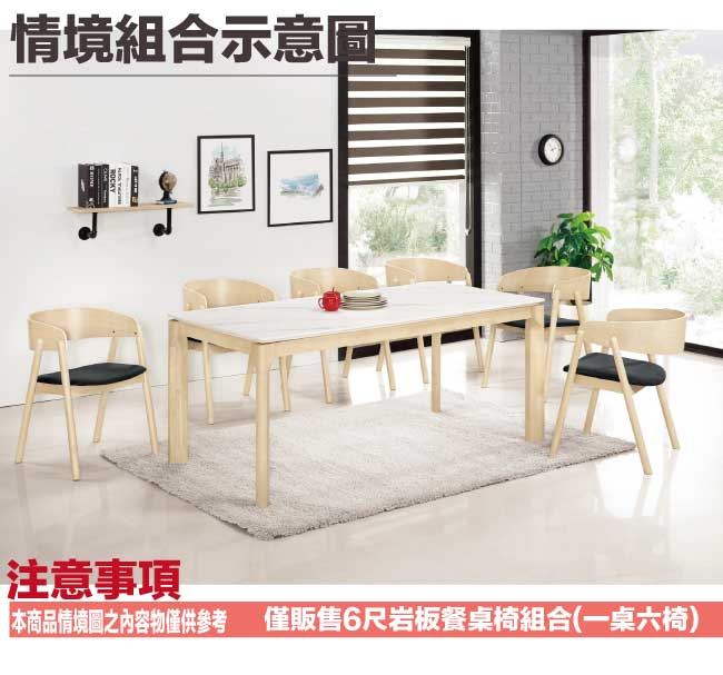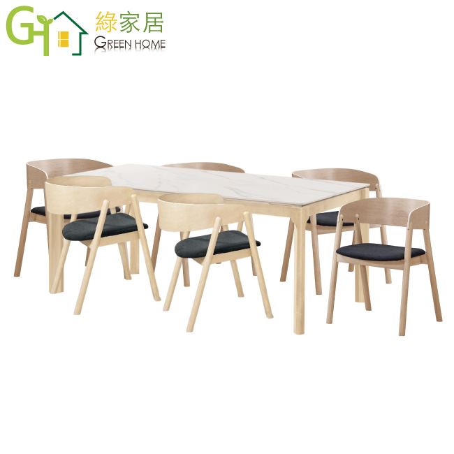 【綠家居】克萊莉6尺岩板實木餐桌布餐椅組合(一桌六椅組合)