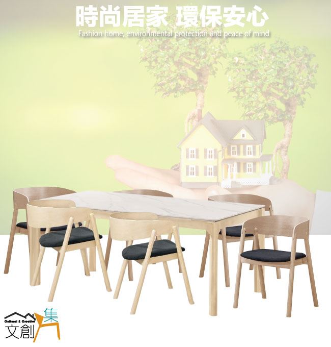 淺橡木紋+一桌六椅組合