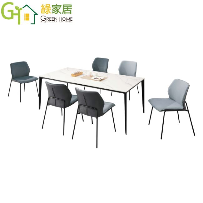 【綠家居】雪芙6尺岩板餐桌椅組合(一桌六椅組合+餐椅二色可選)