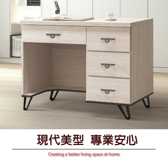 商品介紹 | 【綠家居】洛沃 時尚3.5尺四抽書桌 淺橡木紋色系+現代簡約風格+安心材質製造,整體採用防蛀木心板+五金滑軌結構+防鏽黑漆腳座等安心材質製造,搭配採用四抽屜+開放式收納等收納空間設計,全由專人配送到家,專業安心服務,替你省下更多時間! 【商品特色】 淺橡木紋色系+現代簡約風格+安心材質製造,使用放心+搭配居家更便利 採用防蛀木心板+五金滑軌結構防鏽黑漆腳座座等安心材質製造 採用四抽屜+開放式收納等收納空間設計 此商品不需要DIY組立,此商品為組立後之成品 品質保證、專業設計、貼心服務 全由專人配送到家,專業安心服務,替您省下更多時間 |