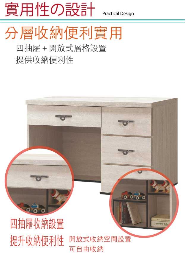 【綠家居】洛沃 時尚3.5尺四抽書桌