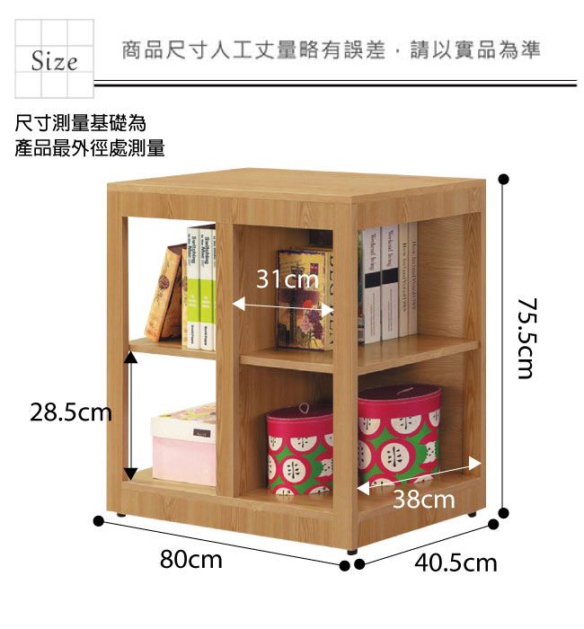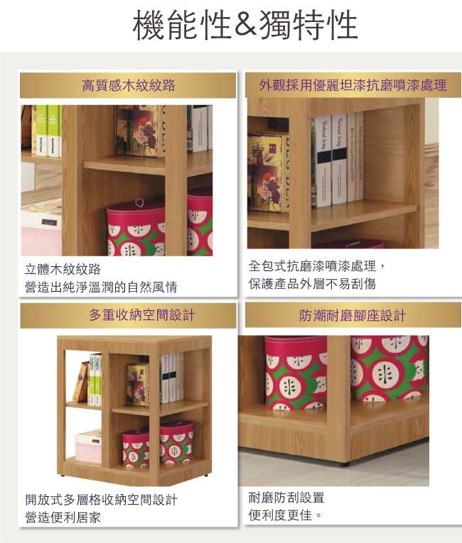 材質 | ◆產品名稱:【綠家居】 茲辛 現代2.7尺開放式收納櫃 產品尺寸: 尺寸:(寬)80x(深)40.5x(高)75.5/公分 ◆材質: 材質:防蛀木心板+防刮耐磨腳座 塗漆:優利坦全包式耐磨噴漆處理 |