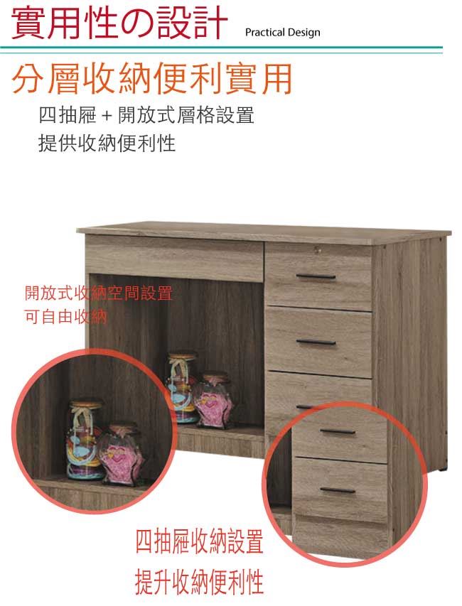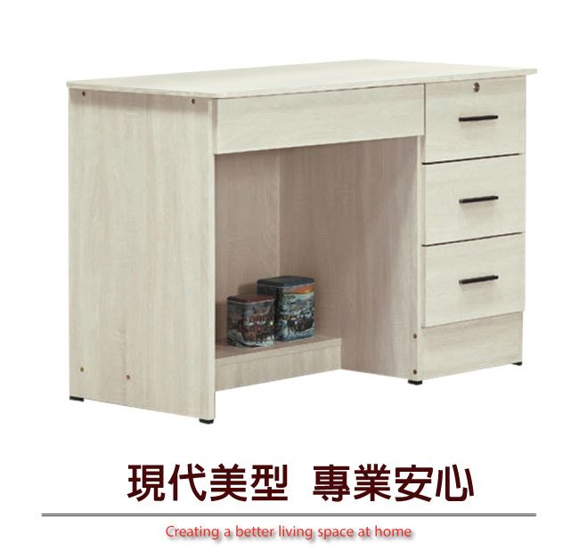 【綠家居】瓦利 現代3.5尺四抽書桌(三色可選)