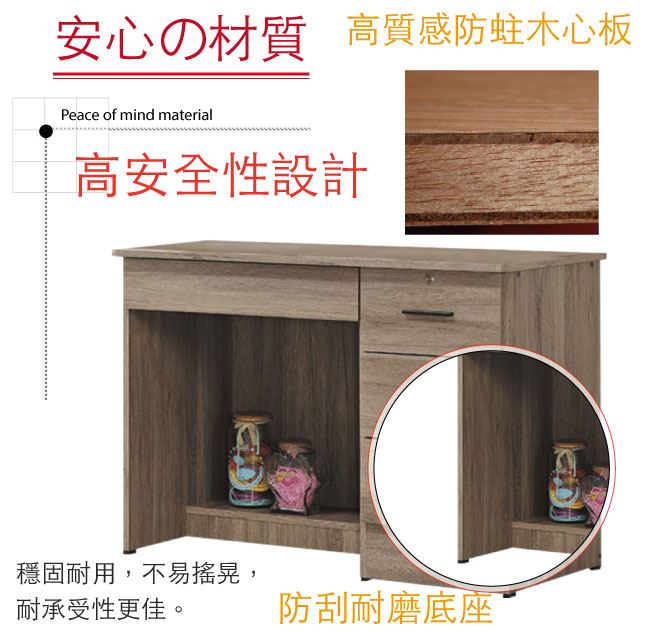 材質 | ◆產品名稱:【綠家居】 瓦利 現代3.5尺四抽書桌(三色可選) 產品尺寸: 尺寸:(寬)105x(深)57x(高)72/公分 ◆材質: 材質:防蛀木心板+防刮耐磨腳座 材質:五金滑軌結構 塗漆:優利坦全包式耐磨噴漆處理 |