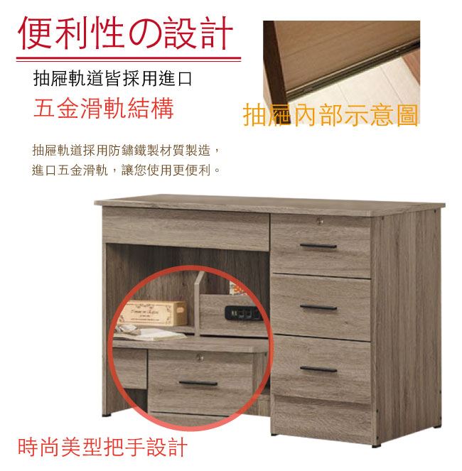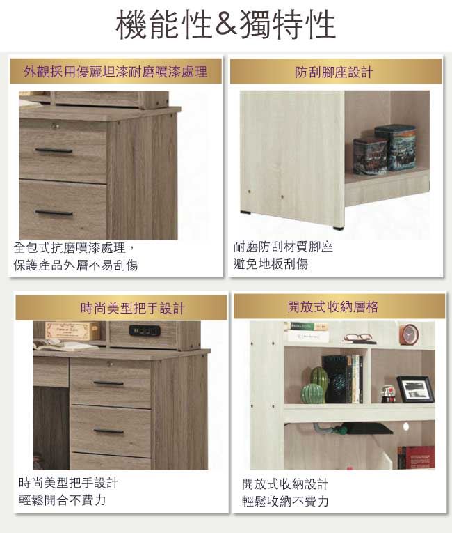 - 四抽屜+開放式收納等收納設計