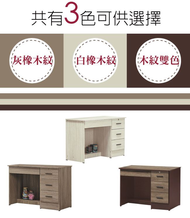 商品介紹 | 【綠家居】瓦利 現代3.5尺四抽書桌(三色可選) 三色可選+現代簡約風格+安心材質製造,整體採用防蛀木心板+防刮耐磨腳座+五金滑軌結構等安心材質製造,外層採用優利坦全包式耐磨噴漆處理搭配四抽屜+開放式收納等收納設計,全由專人配送到家,專業安心服務,替你省下更多時間! 【商品特色】 三色可選+現代簡約風格+安心材質製造,使用放心+搭配居家更便利 採用防蛀木心板+防刮耐磨腳座+五金滑軌結構等安心材質製造 四抽屜+開放式收納等收納設計 此商品不需要DIY組立,此商品為組立後之成品 品質保證、專業設計、貼心服務 全由專人配送到家,專業安心服務,替您省下更多時間 |