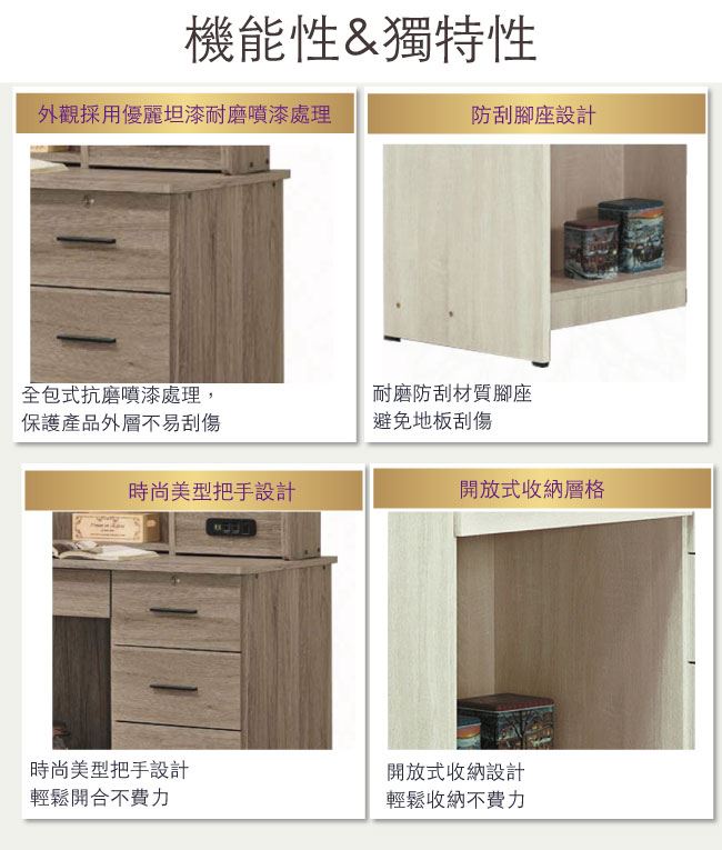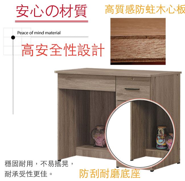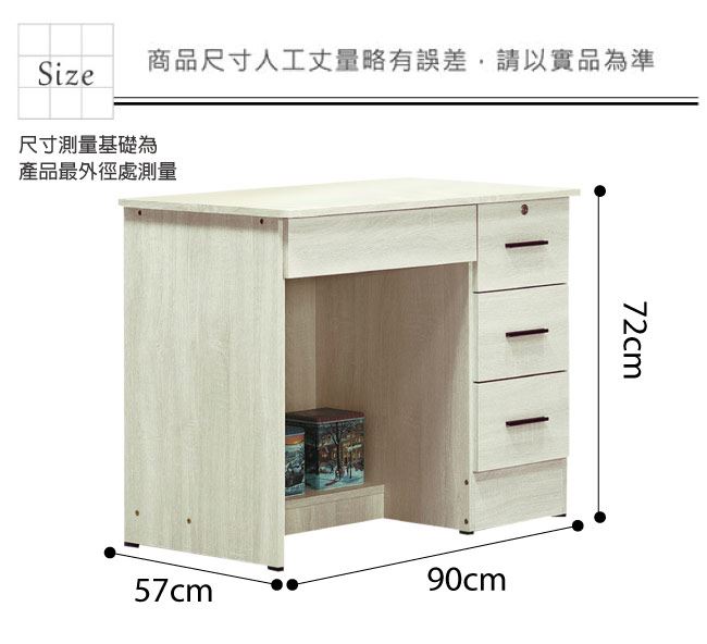 材質 | ◆產品名稱:【綠家居】 瓦利 現代3尺四抽書桌(二色可選) 產品尺寸: 尺寸:(寬)90x(深)57x(高)72/公分 ◆材質: 材質:防蛀木心板+防刮耐磨腳座 材質:五金滑軌結構 塗漆:優利坦全包式耐磨噴漆處理 |