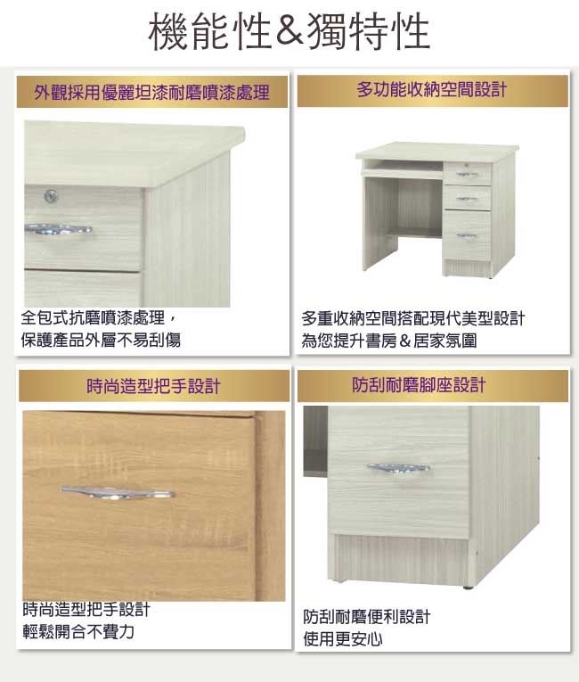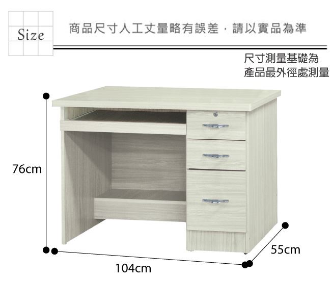 材質 | ◆產品名稱: 【綠家居】馬多爾 時尚3.5尺三抽拉合鍵盤書桌(二色可選) 尺寸:(寬)104x(深)55x(高)76/公分 ◆材質: 材質:防蛀木心板+防潮耐磨腳座+五金滑軌結構 噴漆:防潮耐磨噴漆處理