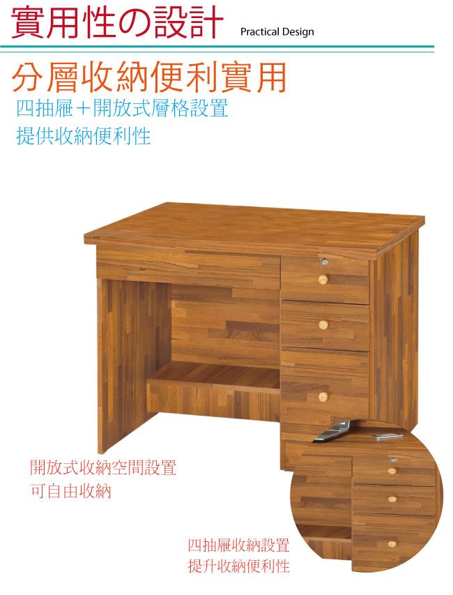 - 四抽屜+開放式收納