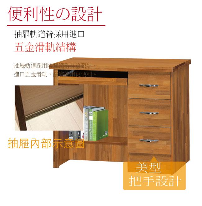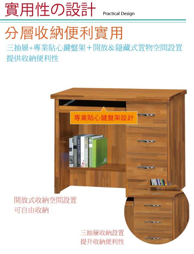【綠家居】歐爾文 時尚3尺三抽拉合鍵盤書桌