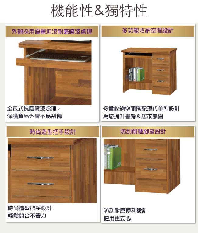 商品介紹 | 【綠家居】歐爾文 時尚3尺三抽拉合鍵盤書桌 柚木紋色系+現代簡約風格+安心材質製造,整體採用防蛀木心板+防潮耐磨腳座+五金滑軌結構等安心材質製造,產品外層採用防潮耐磨噴漆處理搭配護眼檯燈設置+三抽屜+拉合鍵盤+開放式收納等收納空間設計,全由專人配送到家,專業安心服務,替你省下更多時間! 【商品特色】 柚木紋色系+現代簡約風格+安心材質製造,使用放心+搭配居家更便利 採用防蛀木心板+防潮耐磨腳座+五金滑軌結構等安心材質製造 產品外層採用防潮耐磨噴漆處理 搭配護眼檯燈設置+三抽屜+拉合鍵盤+開放式收納等收納空間設計 此商品不需要DIY組立,此商品為組立後之成品 品質保證、專業設計、貼心服務 全由專人配送到家,專業安心服務,替您省下更多時間 |