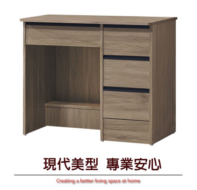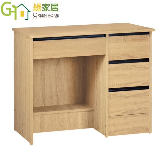 【綠家居】特爾 時尚3尺鋁條四抽書桌(三色可選)