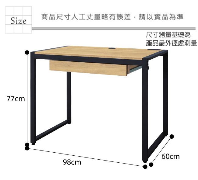 材質 | ◆產品名稱: 【綠家居】英特爾 時尚3.3尺單抽邊框書桌(二色可選) 尺寸:(寬)98x(深)60x(高)77/公分 ◆材質: 材質:防蛀木心板+黑鐵砂邊框&腳座+五金滑軌結構 噴漆:防潮耐磨噴漆處理