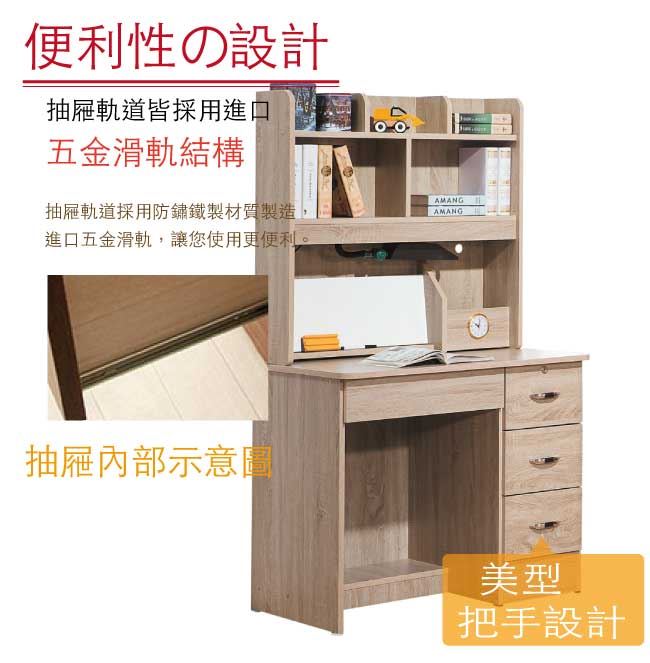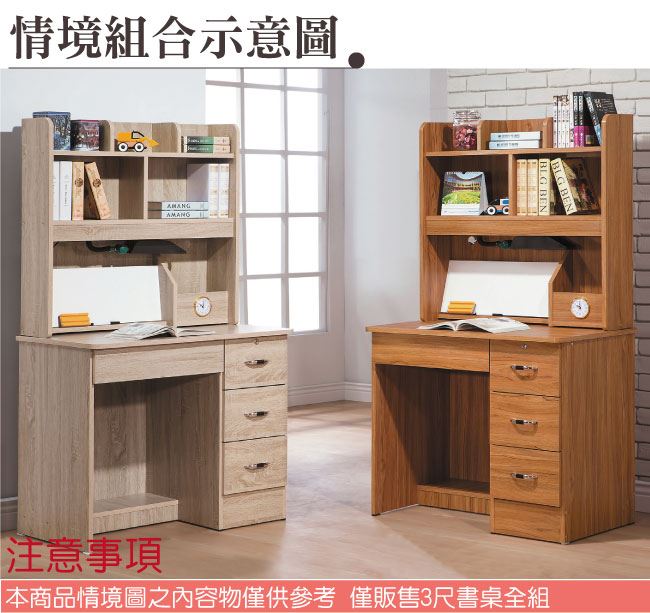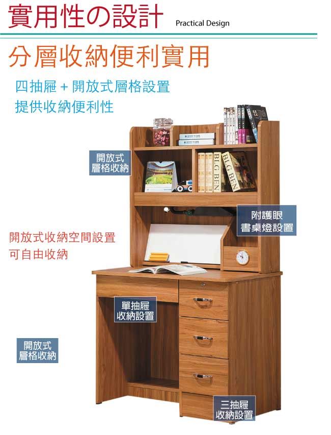 【綠家居】吉姆 多功能3尺四抽書桌組合(三色可選)