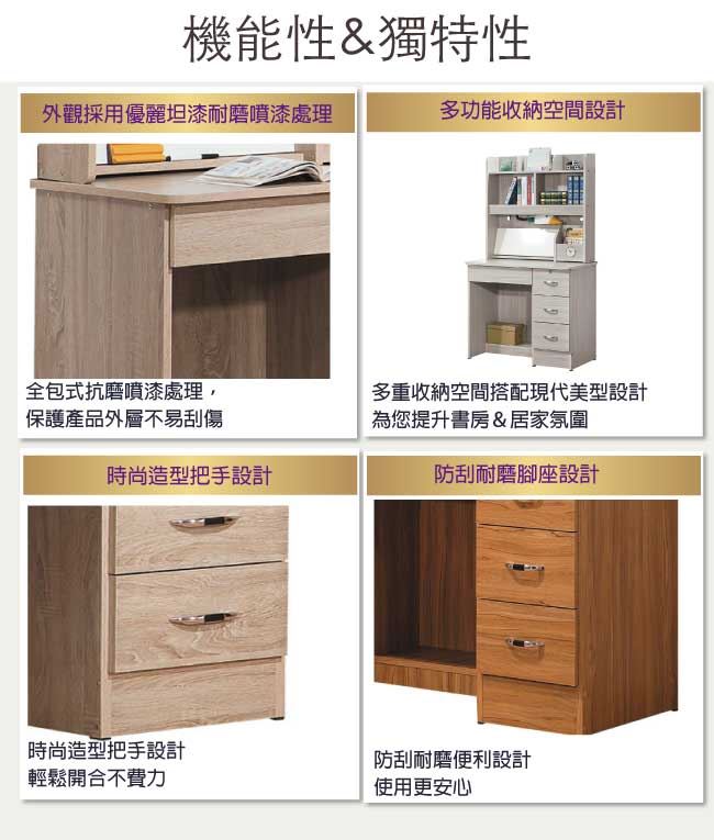 商品介紹 | 【綠家居】吉姆 多功能3尺四抽書桌組合(三色可選) 三色可選+現代簡約風格+安心材質製造,整體採用防蛀木心板+防潮耐磨腳座+五金滑軌結構等安心材質製造,產品外層採用防潮耐磨噴漆處理搭配四抽屜+開放式層格+護眼書桌燈設置等收納空間設計,全由專人配送到家,專業安心服務,替你省下更多時間! 【商品特色】 三色可選+現代簡約風格+安心材質製造,使用放心+搭配居家更便利 採用防蛀木心板+防潮耐磨腳座+五金滑軌結構等安心材質製造 產品外層採用防潮耐磨噴漆處理 搭配開門櫃+單抽屜+開放式層格+護眼書桌燈設置等收納空間設計 此商品不需要DIY組立,此商品為組立後之成品 品質保證、專業設計、貼心服務 全由專人配送到家,專業安心服務,替您省下更多時間 |